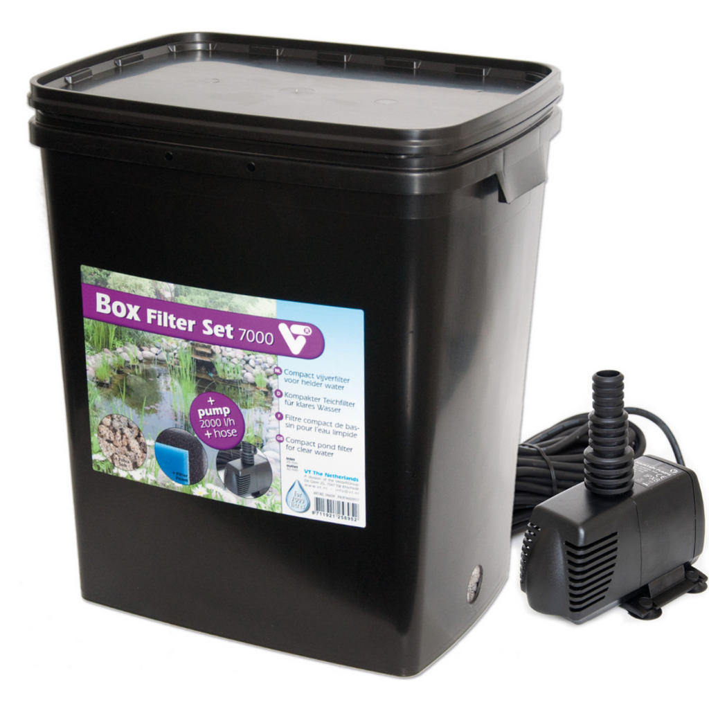 Box Filter Set 7000 | bis 7000 Liter Wasser mit Filterschaum fein und grob + Filtra-Sub + Pumpe 2000 l/h + Schlauch