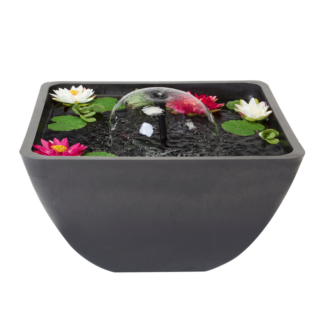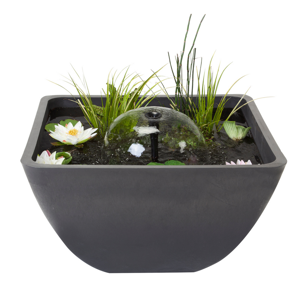 Unsere Fountain Pond Mini-Teiche können nahezu überall im Garten, auf der Terrasse oder sogar im Haus oder auf dem Balkon aufgestellt werden. Dank ihres leichten Gewichts sind sie einfach zu transportieren und können je nach Wunsch mit der mitgelieferten Fontäne oder dem Pflanzkorb ausgestattet werden. Ihrer Fantasie sind keine Grenzen gesetzt! Eine wunderbare Ergänzung ist unser Wasserfall, der das Teicherlebnis noch weiter bereichert. Das Wasser fließt sanft durch den Miniteich und schafft eine entspannte Atmosphäre.