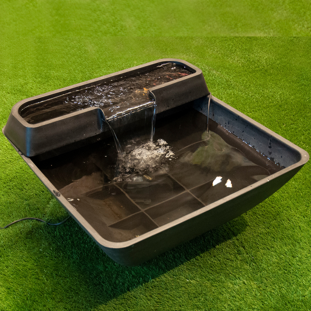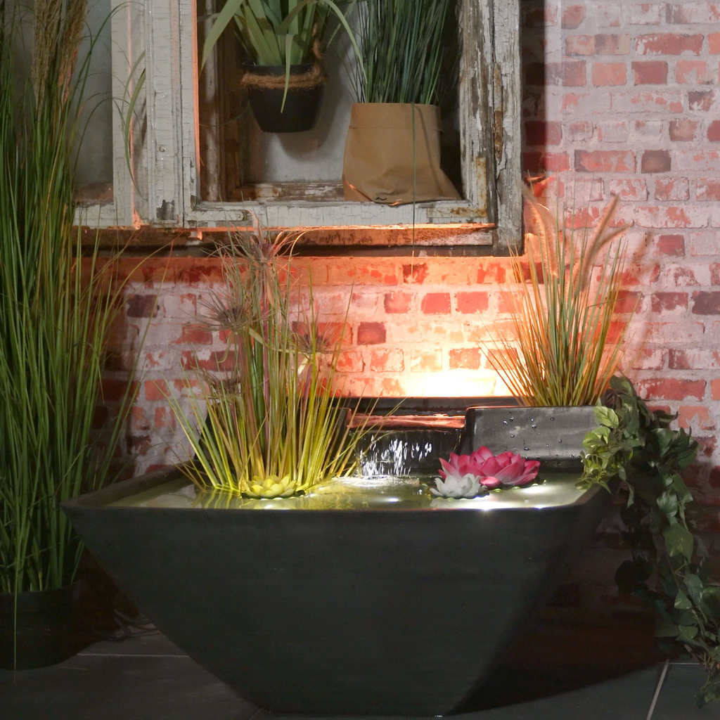 Unsere Fountain Pond Mini-Teiche können nahezu überall im Garten, auf der Terrasse oder sogar im Haus oder auf dem Balkon aufgestellt werden. Dank ihres leichten Gewichts sind sie einfach zu transportieren und können je nach Wunsch mit der mitgelieferten Fontäne oder dem Pflanzkorb ausgestattet werden. Ihrer Fantasie sind keine Grenzen gesetzt! Eine wunderbare Ergänzung ist unser Wasserfall, der das Teicherlebnis noch weiter bereichert. Das Wasser fließt sanft durch den Miniteich und schafft eine entspannte Atmosphäre.