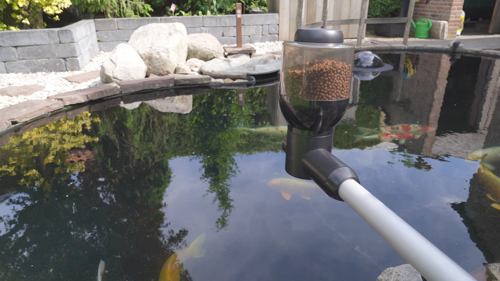 Aufgrund ihrer schnellen Verdauung profitieren Fische von mehreren kleinen Portionen Futter pro Tag. Bei einer regelmäßigen Ernährung wachsen sie gut und bleiben gesund. Große Portionen werden nicht vollständig gefressen. Fischfutter sinkt dann zu Boden und verschmutzt den Teich mit negativen Auswirkungen auf die Wasserqualität.