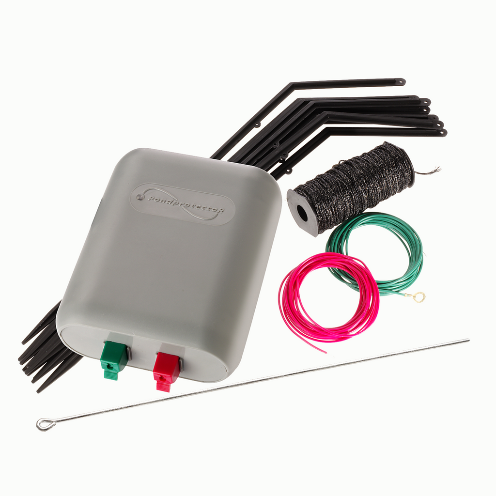 Der Pond Protector schützt Ihre Teichfische gegen hungrige Reiher und Katzen. Die Einfriedung mit diesem Elektrozaun ist eine sehr effektive Methode, um unerwünschte Tiere vom Teich fernzuhalten. Das Netzgerät sendet elektrische Impulse an den Draht um den Teich. Bei Berührung verspürt das Tier einen Schock, der eine direkte Fluchtreaktion auslöst. Das instinktive Verhalten des Reihers oder der Katze besteht darin, sich vom Zaun fernzuhalten. Die Fische sind wieder sicher im Teich.