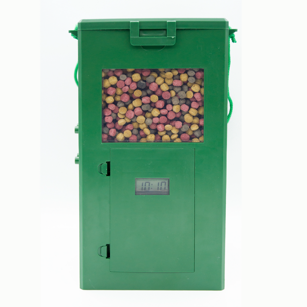 Ihre Teichfische und Haustiere werden regelmäßig und gesund gefüttert. Selbst während Ihrer Abwesenheit oder im Urlaub müssen Sie sich keine Sorgen um die tägliche Fütterung machen. Der Quick Feeder ist die Lösung. Der Futterautomat, betrieben mit zwei Batterien (C 1,5 V, nicht im Lieferumfang enthalten), dosiert automatisch Futter bis zu 4 Mal pro Tag. Einfache Bedienung und Installation ohne Stromanschluss.