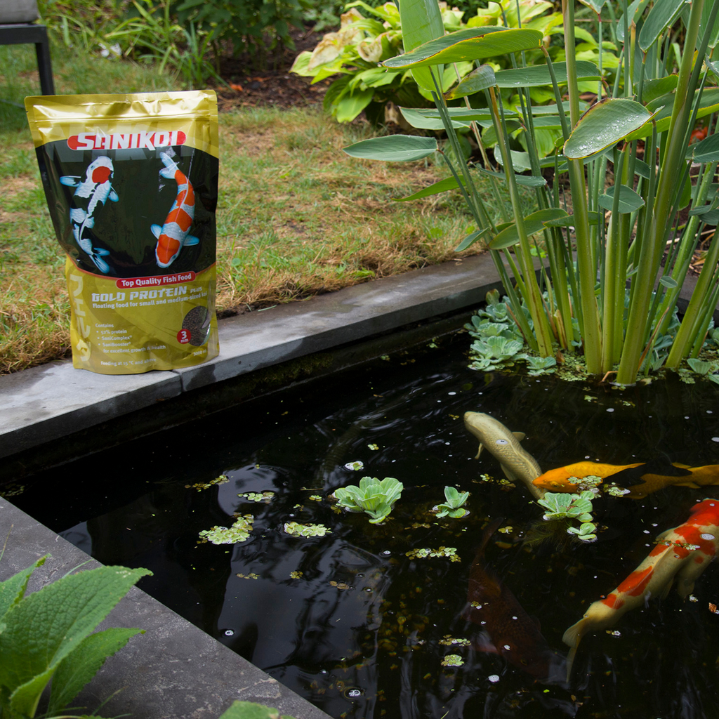 Das SaniKoi Food ist ein schwimmendes Hauptfutter, das u.a. aufgrund seines hohen Proteingehalts bei Wassertemperaturen ab 15 °C eingesetzt wird. Füttern Sie mehrmals am Tag. Achten Sie darauf, dass das Futter innerhalb von 5 Minuten aufgefressen wird. Durch die spezielle Zusammensetzung des Futters trübt sich das Wasser nicht und Teichumgebung und Filter werden kaum belastet.