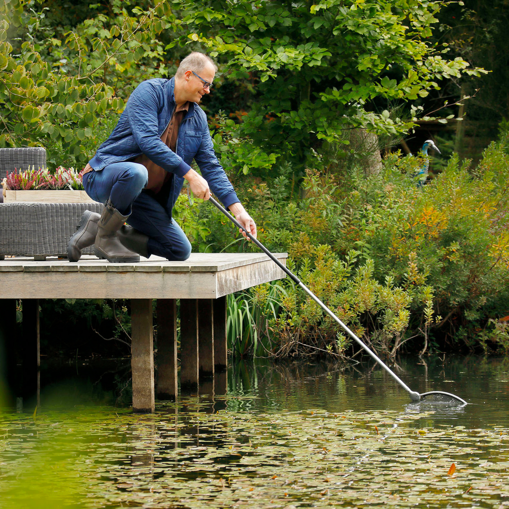 Velda hat ein großes Kescher Sortiment mit diversen Fisch- und Teichnetzen mit Teleskopstiel. Das Netz ist unsichtbar in den Rahmen eingearbeitet. Mit der auffälligen grünen Biese im Netz ist dieses im Wasser gut sichtbar.