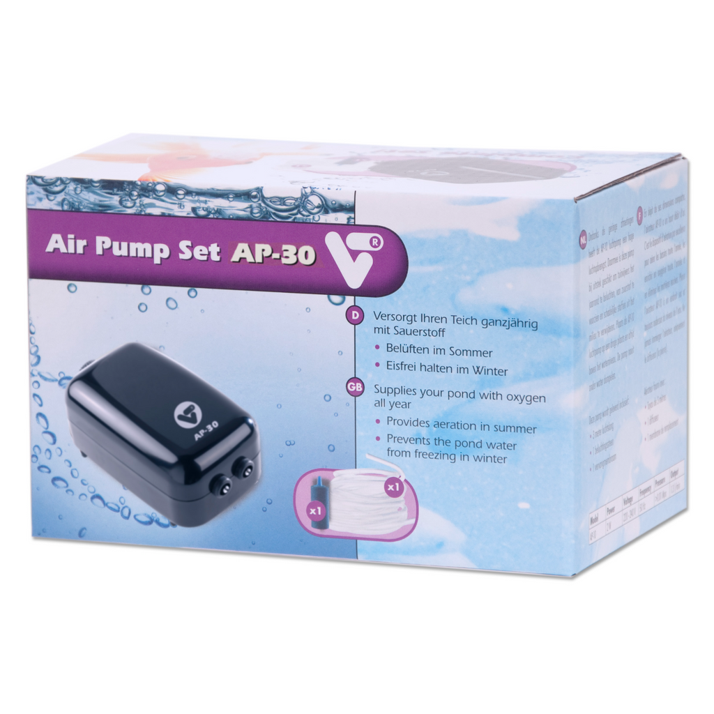 Die AP-Luftpumpe ist eine leistungsstarke und kompakte Lösung, um Ihren Gartenteich das ganze Jahr über mit Sauerstoff zu versorgen. Mit der elektronischen Regelung können Sie die Belüftungsstufe stufenlos einstellen. Die Pumpe ist in den Modellen AP-10, AP-30 und AP-50 erhältlich und bietet eine hohe Luftleistung bei geringen Abmessungen. Mit einem doppelten Luftauslass und einem 3 Meter langen Luftschlauch, sowie Aerationssteinen und Ersatzmembranen, ist die AP-Luftpumpe eine ideale Lösung, um Ihren Teich ganzjährig mit Sauerstoff zu versorgen und schädliche Stoffe aus dem Milieu zu entfernen.